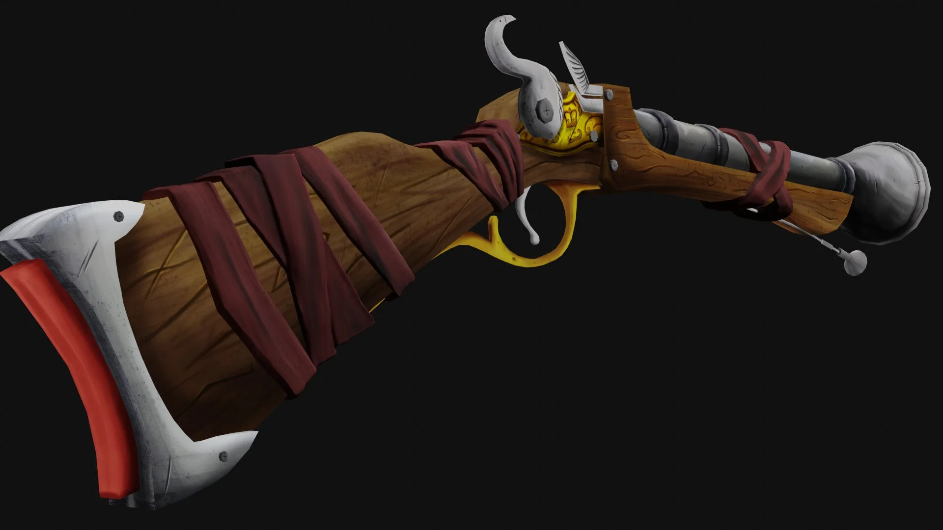 Within the height of the lockdown, this project marked my first ambitious dive into the world of 3D modeling. a stylized blunderbuss, imagined as a whimsical artifact fit for a cartoonish game world. Every detail was hand painted to fully embrace that style. Harsh grainy lines for the texture of the wood and soft gentle shading to convey the rough metal.