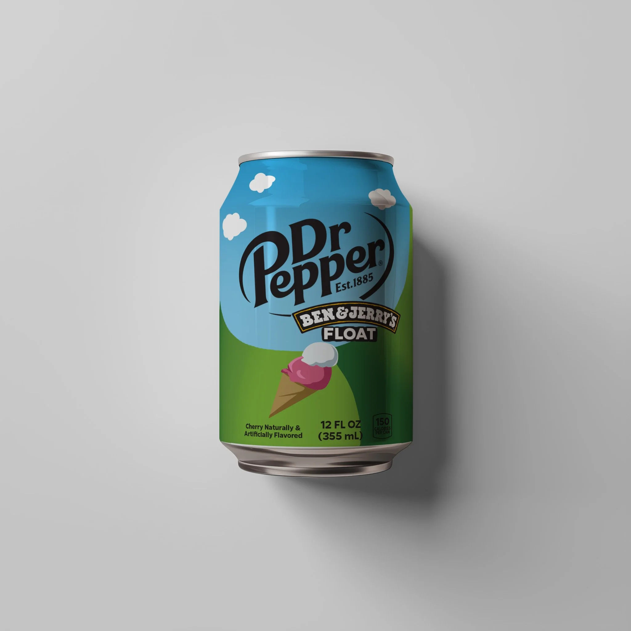 I selected two new flavors to develop and two existing products to refresh. The Ben & Jerry’s Float and Peach flavors were original concepts, while the Vanilla Cherry and Cherry flavors were redesigned to reflect the brand’s updated visual direction and to create clearer distinction between their previous designs.